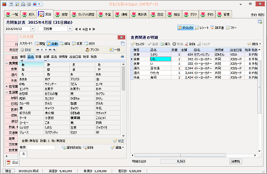 マウスでクリックするだけでどんどん家計簿が入力できます。とっても簡単!!データベースエンジン搭載のがまぐち君だからできる高機能です。